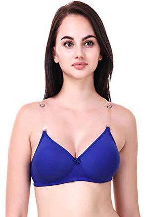 The Blue Transparent Strap Bra combines a vibrant blue hue with stylish transparent straps for a modern, eye-catching look. Designed for a seamless fit under clothing, this bra offers comfort and support with its lightweight, breathable fabric. Perfect for adding a pop of color to your lingerie collection while maintaining a sleek and sophisticated appearance.